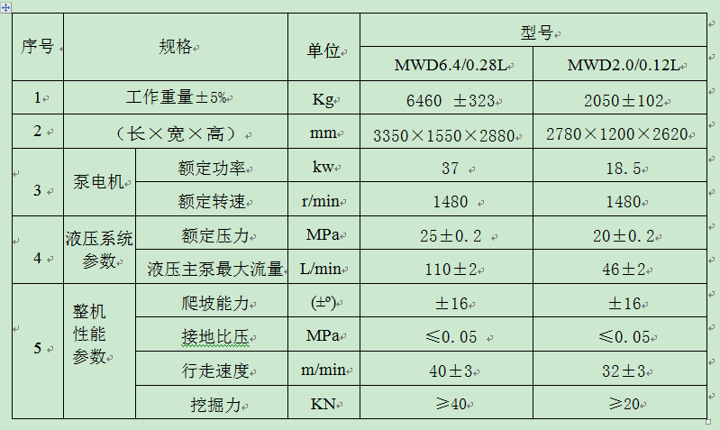 礦用液壓挖掘機(jī)參數(shù)